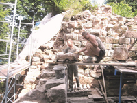 De longs travaux de démontage et de remontage à l’identique de la courtine de liaison tour de flanquement et tour-bouclier ont été lancés.