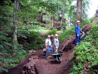 Juin : travaux de réhabilitation du chemin médiéval en partenariat avec l’établissement Oberlin de La Broque.