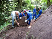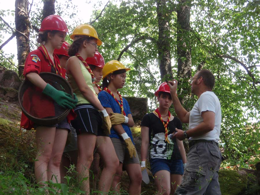 Dans la semaine du 22 au 26 juin 2009, les Veilleurs de Salm ont eu, dans le cadre d’un partenariat avec l’établissement Oberlin de La Claquette, commune de La Broque, le plaisir d’accueillir sept jeunes de la classe N5 dans les ruines du château. Les Grands (la classe 5 est en effet celle des grands), nous on donné un sérieux coup de main, puisqu’il s’agissait de nettoyer la base de la tour bouclier d’un cône de décombres constitué d’éboulis et de terre végétale.